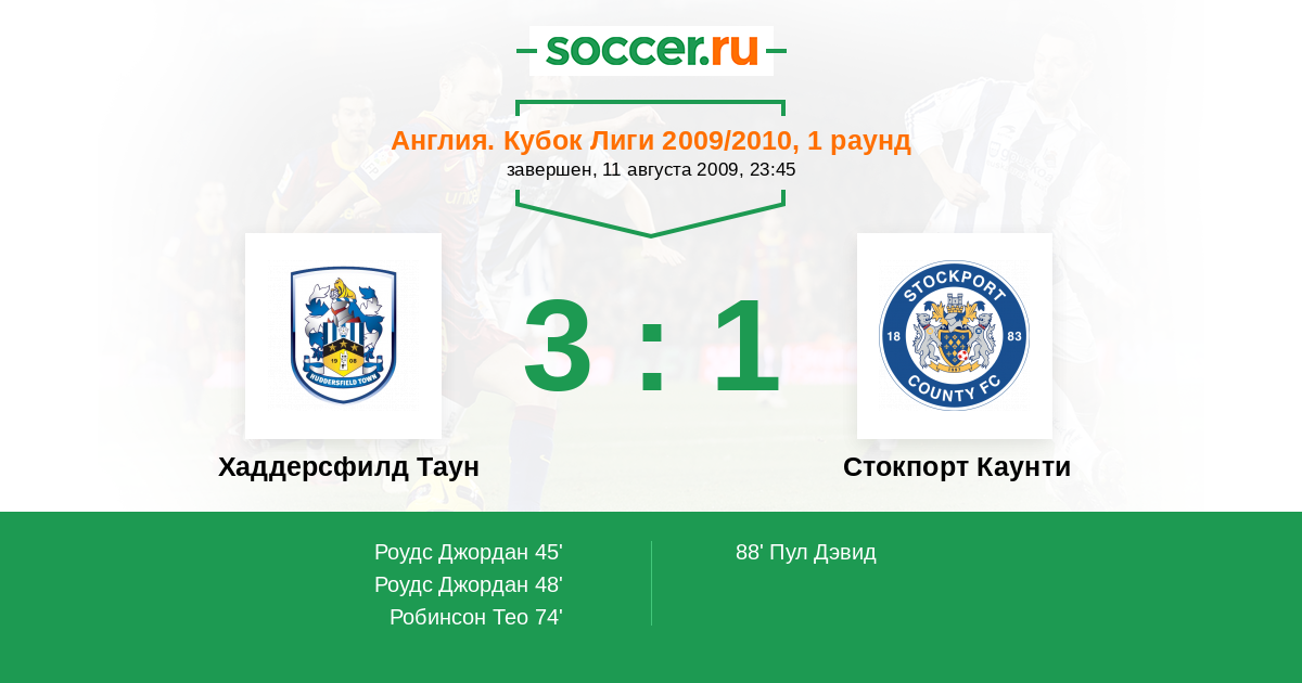 Протокол матча Хаддерсфилд Таун против Стокпорт Каунти
