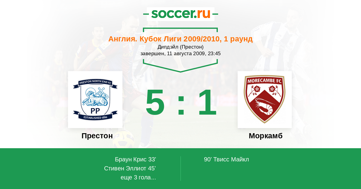 Протокол матча Престон против Моркамб