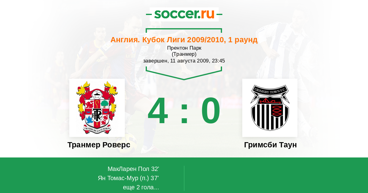 Протокол матча Транмер Роверс против Гримсби Таун
