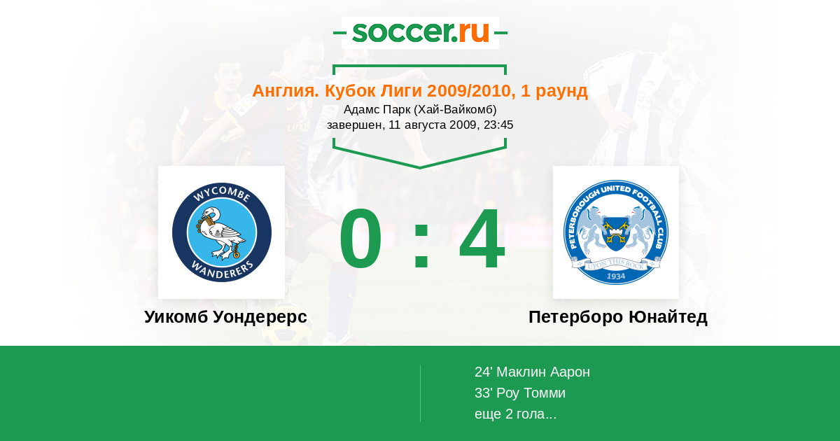 Протокол матча Уикомб Уондерерс против Петерборо Юнайтед