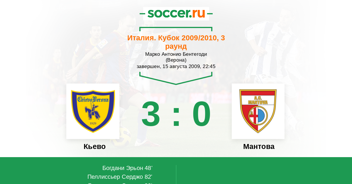 Протокол матча Кьево против Мантова