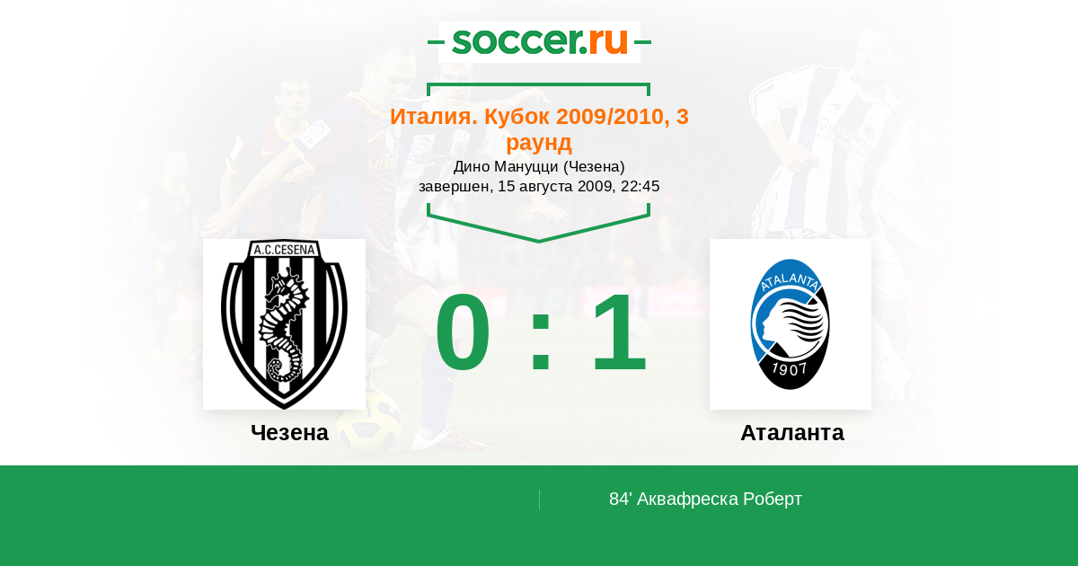 Протокол матча Чезена против Аталанта