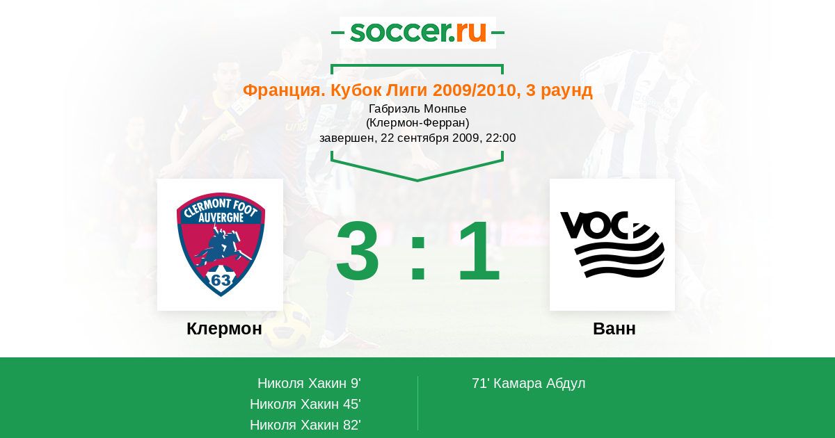 Протокол матча Клермон против Ванн