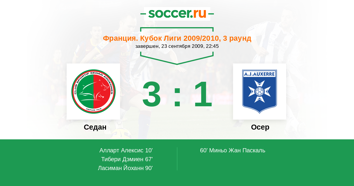Протокол матча Седан против Осер
