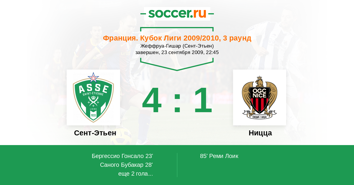 Протокол матча Сент-Этьен против Ницца
