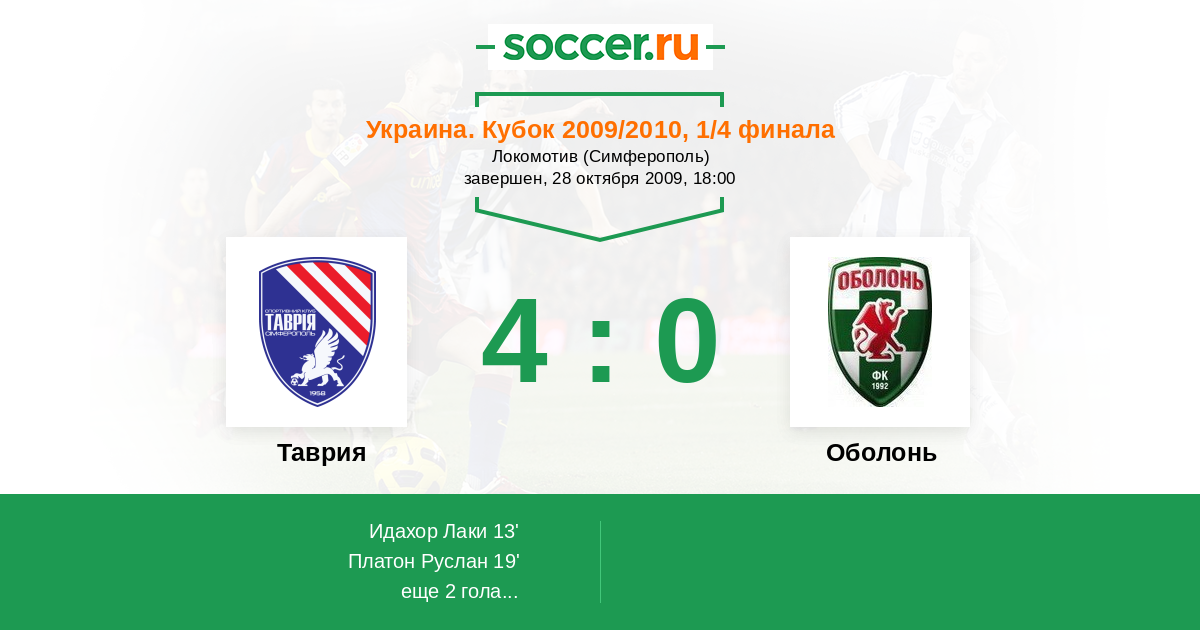 Протокол матча Таврия против Оболонь