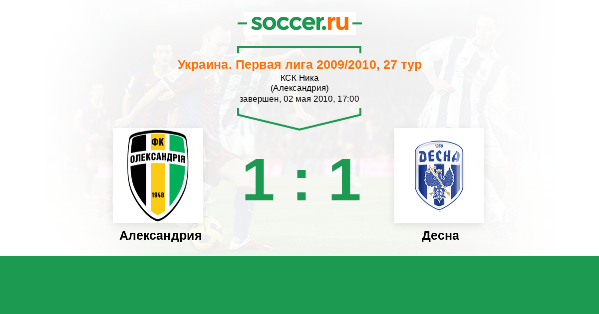 История матча Александрия против Десна