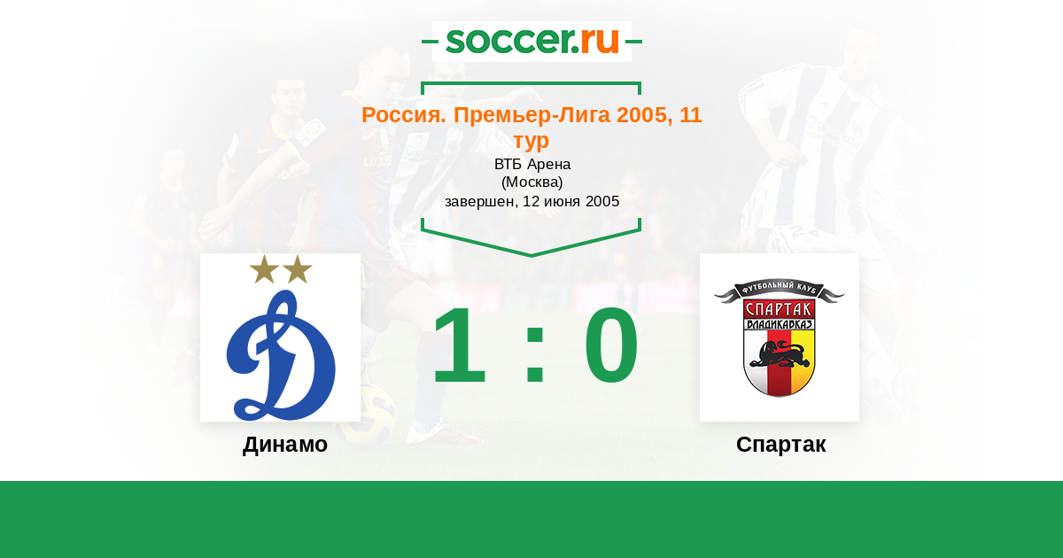 Россия. Премьер-Лига 16.10.2005 Спартак Логотип футбольный клуб Спартак (Владикавказ) 2:4 Логотип футбольный клуб Динамо (Москва) Динамо