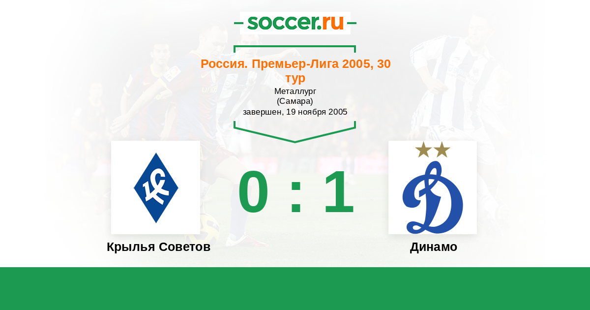 Россия. Премьер-Лига 10.07.2005 Динамо Логотип футбольный клуб Динамо (Москва) 3:1 Логотип футбольный клуб Крылья Советов (Самара) Крылья Советов