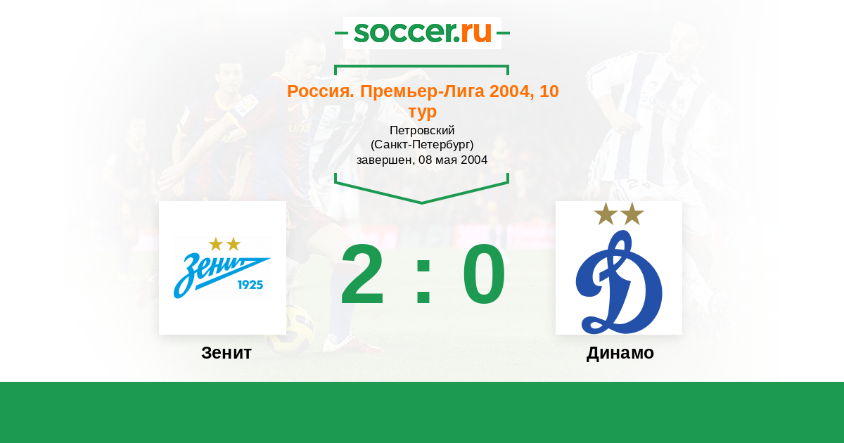 Россия. Премьер-Лига 30.08.2004 Динамо Логотип футбольный клуб Динамо (Москва) 0:2 Логотип футбольный клуб Зенит (Санкт-Петербург) Зенит