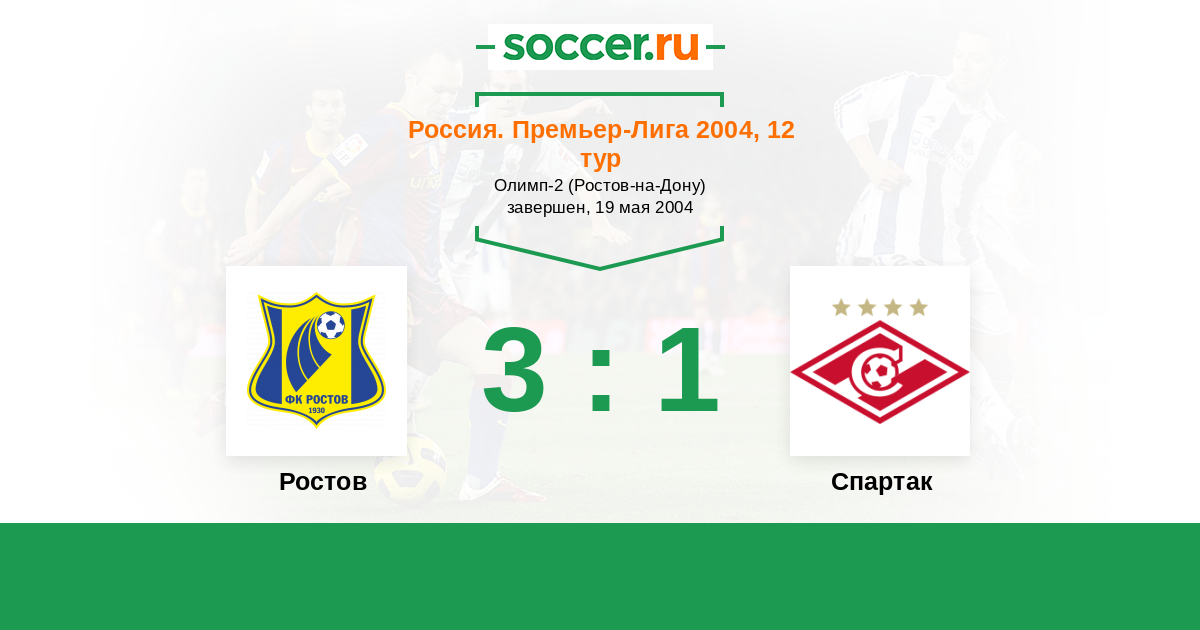 Россия. Премьер-Лига 28.07.2004 Спартак Логотип футбольный клуб Спартак (Москва) 1:0 Логотип футбольный клуб Ростов (Ростов-на-Дону) Ростов