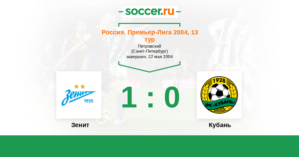 Россия. Премьер-Лига 10.07.2004 Кубань Логотип футбольный клуб Кубань (Краснодар) 1:3 Логотип футбольный клуб Зенит (Санкт-Петербург) Зенит