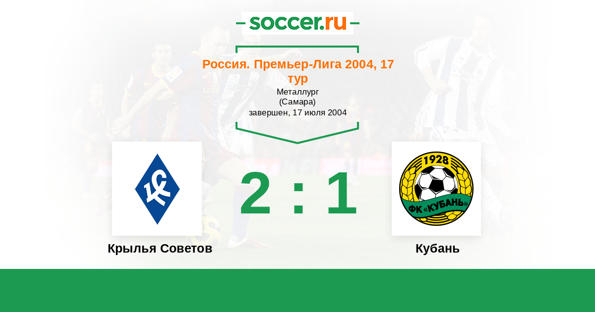 Россия. Премьер-Лига 19.05.2004 Кубань Логотип футбольный клуб Кубань (Краснодар) 1:1 Логотип футбольный клуб Крылья Советов (Самара) Крылья Советов