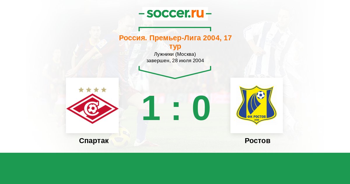 Россия. Премьер-Лига 20.07.2003 Спартак Логотип футбольный клуб Спартак (Москва) 1:0 Логотип футбольный клуб Ростов (Ростов-на-Дону) Ростов