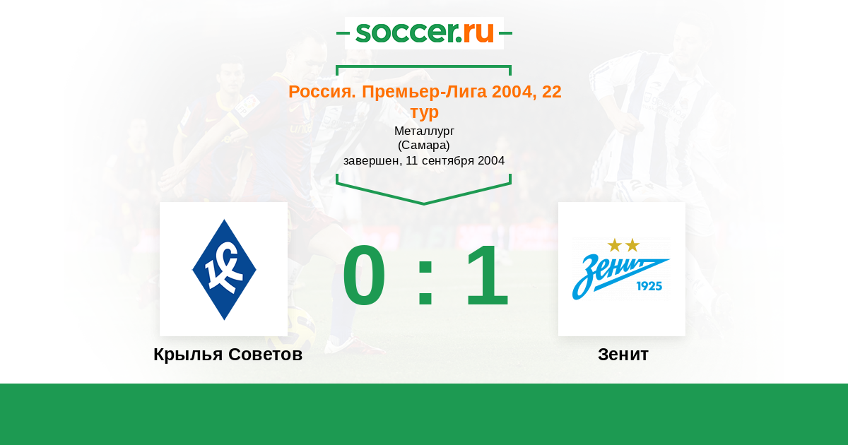 Россия. Премьер-Лига 23.04.2005 Крылья Советов Логотип футбольный клуб Крылья Советов (Самара) 3:0 Логотип футбольный клуб Зенит (Санкт-Петербург) Зенит