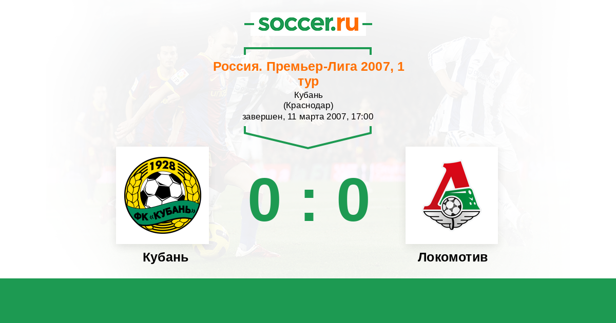 Россия. Премьер-Лига 11.11.2007 Локомотив Логотип футбольный клуб Локомотив (Москва) 2:3 Логотип футбольный клуб Кубань (Краснодар) Кубань