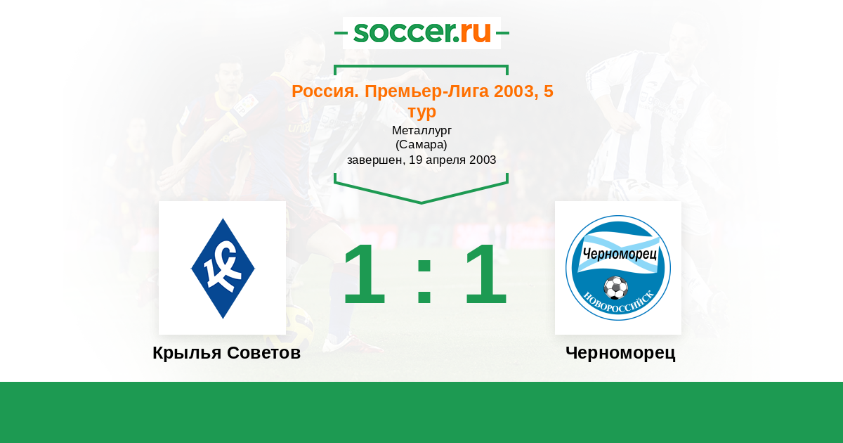 Россия. Премьер-Лига 29.04.1995 Крылья Советов Логотип футбольный клуб Крылья Советов (Самара) 1:0 Логотип футбольный клуб Черноморец (Новороссийск) Черноморец