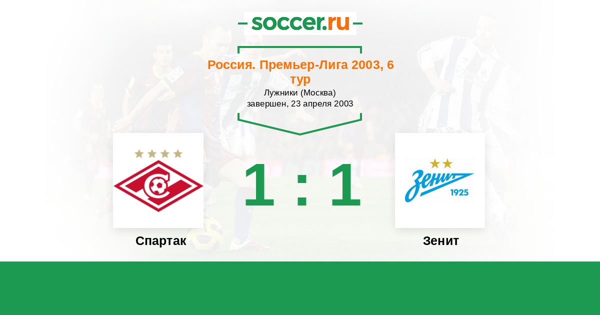 Россия. Премьер-Лига 19.09.2003 Зенит Логотип футбольный клуб Зенит (Санкт-Петербург) 2:1 Логотип футбольный клуб Спартак (Москва) Спартак