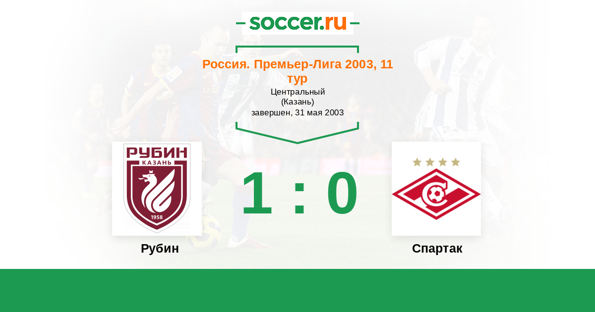 Россия. Премьер-Лига 23.08.2003 Спартак Логотип футбольный клуб Спартак (Москва) 0:2 Логотип футбольный клуб Рубин (Казань) Рубин