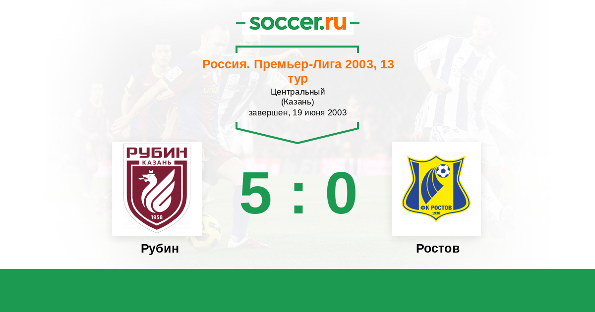 Россия. Премьер-Лига 26.07.2003 Ростов Логотип футбольный клуб Ростов (Ростов-на-Дону) 0:1 Логотип футбольный клуб Рубин (Казань) Рубин
