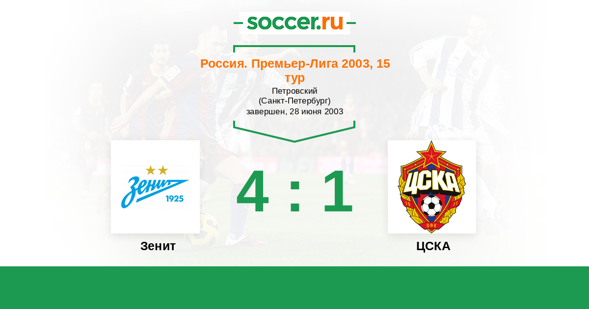 Россия. Премьер-Лига 11.07.2003 ЦСКА Логотип футбольный клуб ЦСКА (Москва) 2:2 Логотип футбольный клуб Зенит (Санкт-Петербург) Зенит