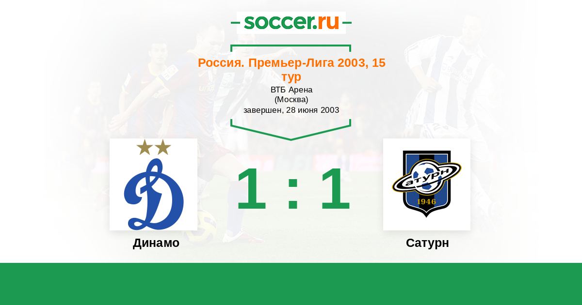 Россия. Премьер-Лига 13.07.2003 Сатурн Логотип футбольный клуб Сатурн (Раменское) 0:1 Логотип футбольный клуб Динамо (Москва) Динамо