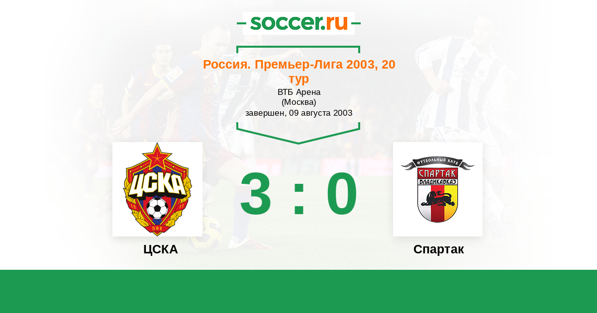 Россия. Премьер-Лига 18.05.2003 Спартак-Алания Логотип футбольный клуб Спартак-Алания (Владикавказ) 0:1 Логотип футбольный клуб ЦСКА (Москва) ЦСКА