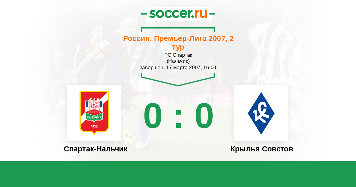 Россия. Премьер-Лига 15.07.2007 Крылья Советов Логотип футбольный клуб Крылья Советов (Самара) 1:2 Логотип футбольный клуб Спартак-Нальчик Спартак-Нальчик