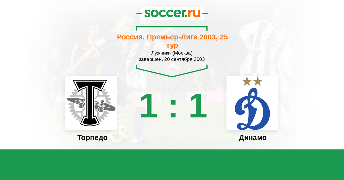 Россия. Премьер-Лига 24.04.2003 Динамо Логотип футбольный клуб Динамо (Москва) 1:2 Логотип футбольный клуб Торпедо (Москва) Торпедо