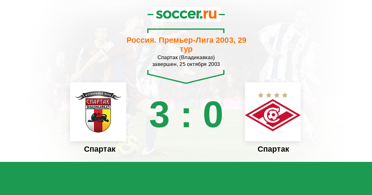 Россия. Премьер-Лига 23.05.2004 Спартак Логотип футбольный клуб Спартак (Москва) 0:1 Логотип футбольный клуб Спартак (Владикавказ) Спартак