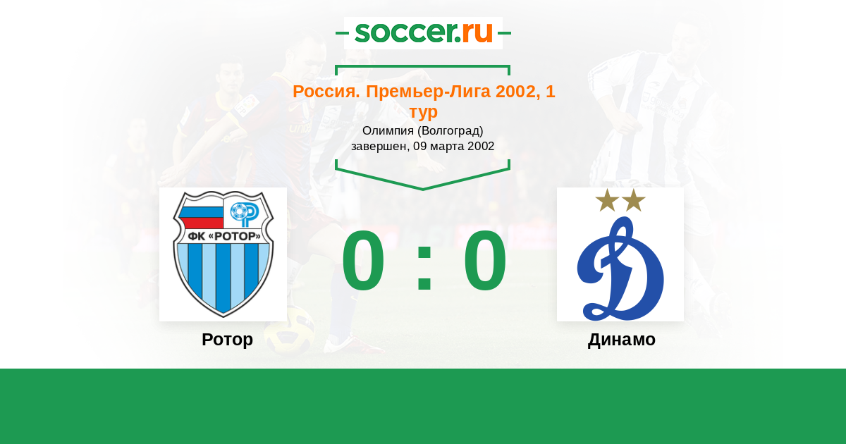 Россия. Премьер-Лига 21.09.2002 Динамо Логотип футбольный клуб Динамо (Москва) 2:3 Логотип футбольный клуб Ротор (Волгоград) Ротор