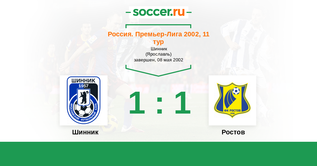 Россия. Премьер-Лига 01.09.2002 Ростсельмаш Логотип футбольный клуб Ростсельмаш (Ростов-на-Дону) 1:1 Логотип футбольный клуб Шинник (Ярославль) Шинник