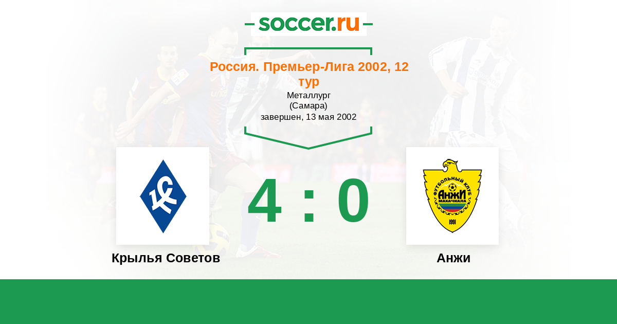Россия. Премьер-Лига 11.08.2002 Анжи Логотип футбольный клуб Анжи (Махачкала) 0:2 Логотип футбольный клуб Крылья Советов (Самара) Крылья Советов