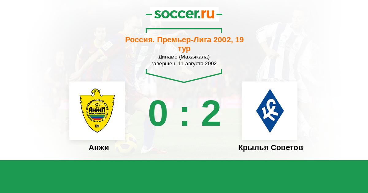 Россия. Премьер-Лига 13.05.2002 Крылья Советов Логотип футбольный клуб Крылья Советов (Самара) 4:0 Логотип футбольный клуб Анжи (Махачкала) Анжи