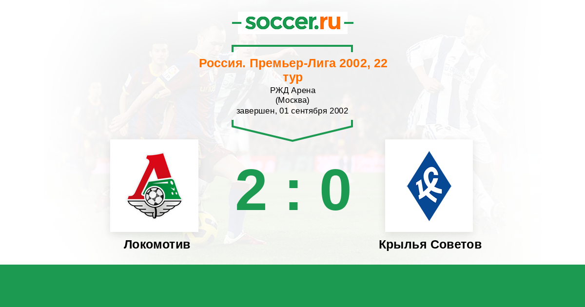 Россия. Премьер-Лига 08.05.2002 Крылья Советов Логотип футбольный клуб Крылья Советов (Самара) 1:0 Логотип футбольный клуб Локомотив (Москва) Локомотив