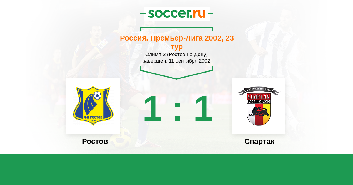 Россия. Премьер-Лига 23.03.2002 Спартак Логотип футбольный клуб Спартак (Владикавказ) 2:1 Логотип футбольный клуб Ростсельмаш (Ростов-на-Дону) Ростсельмаш