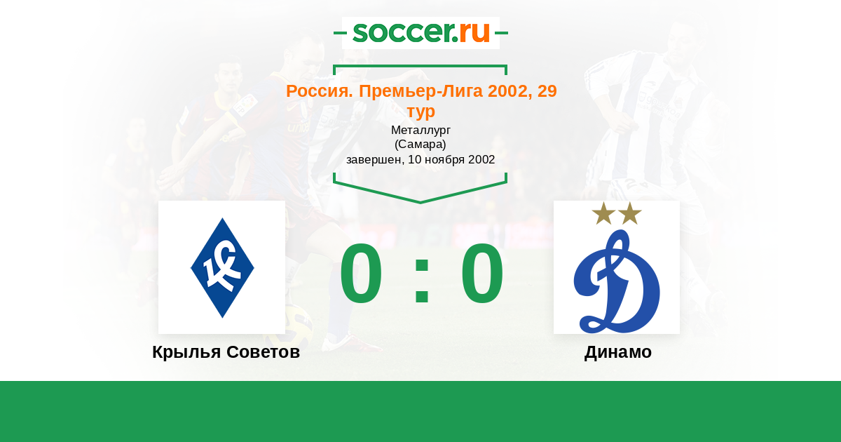 Россия. Премьер-Лига 20.04.2002 Динамо Логотип футбольный клуб Динамо (Москва) 0:1 Логотип футбольный клуб Крылья Советов (Самара) Крылья Советов