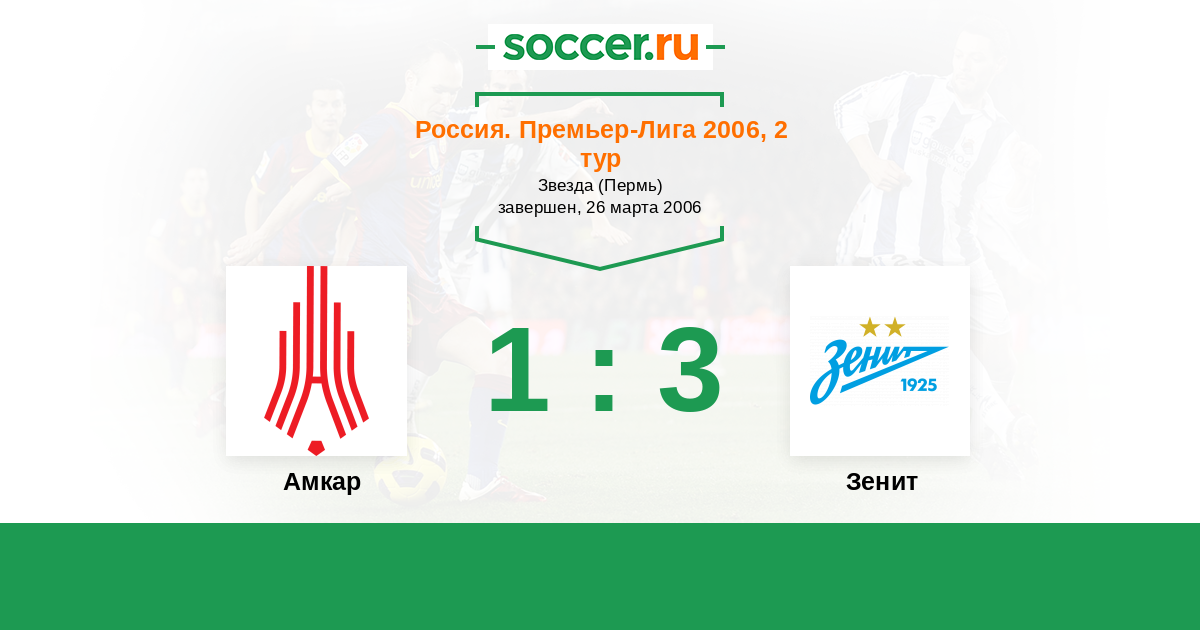 Россия. Премьер-Лига 28.08.2006 Зенит Логотип футбольный клуб Зенит (Санкт-Петербург) 2:0 Логотип футбольный клуб Амкар (Пермь) Амкар