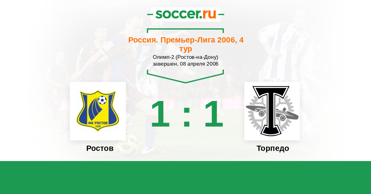 Россия. Премьер-Лига 16.09.2006 Торпедо Логотип футбольный клуб Торпедо (Москва) 0:2 Логотип футбольный клуб Ростов (Ростов-на-Дону) Ростов
