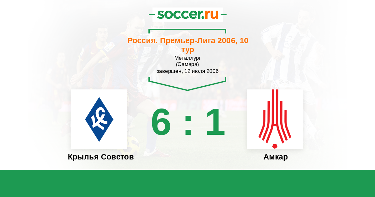 Россия. Премьер-Лига 26.06.2005 Амкар Логотип футбольный клуб Амкар (Пермь) 1:1 Логотип футбольный клуб Крылья Советов (Самара) Крылья Советов