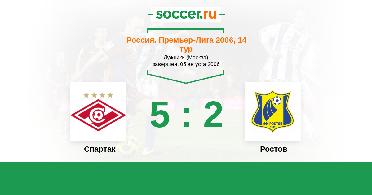 Россия. Премьер-Лига 06.08.2005 Спартак Логотип футбольный клуб Спартак (Москва) 2:0 Логотип футбольный клуб Ростов (Ростов-на-Дону) Ростов