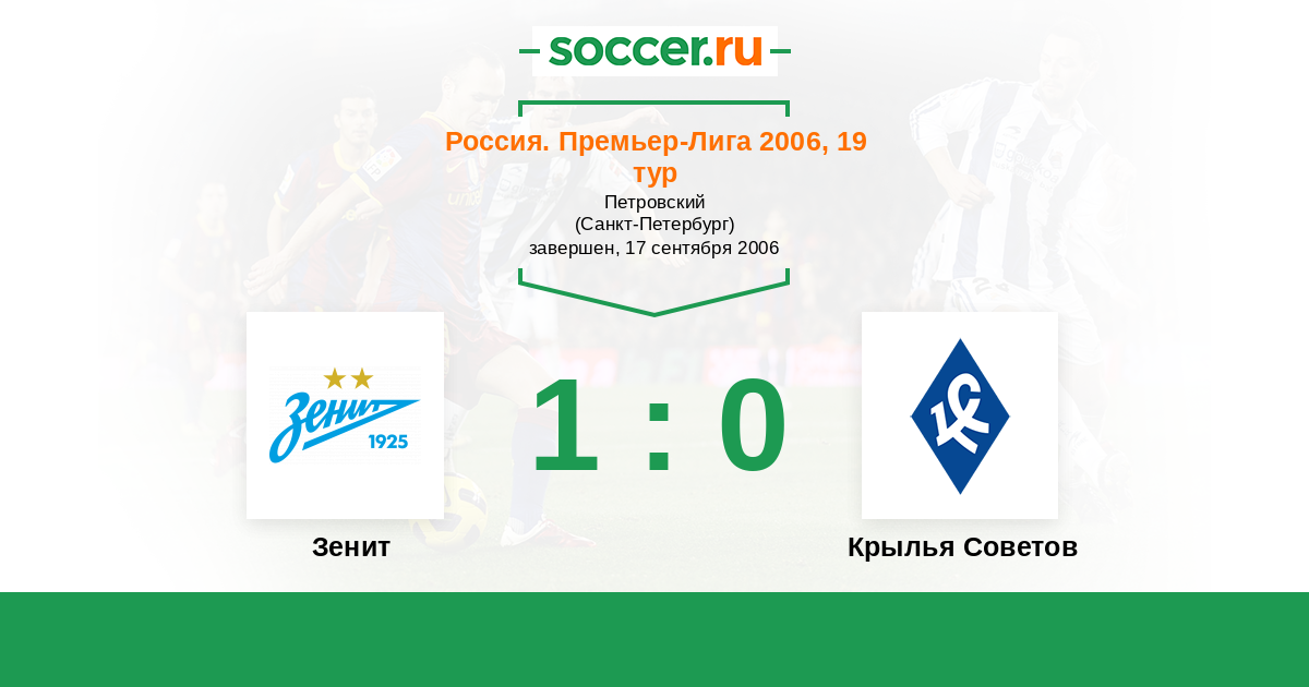 Россия. Премьер-Лига 09.04.2006 Крылья Советов Логотип футбольный клуб Крылья Советов (Самара) 3:2 Логотип футбольный клуб Зенит (Санкт-Петербург) Зенит