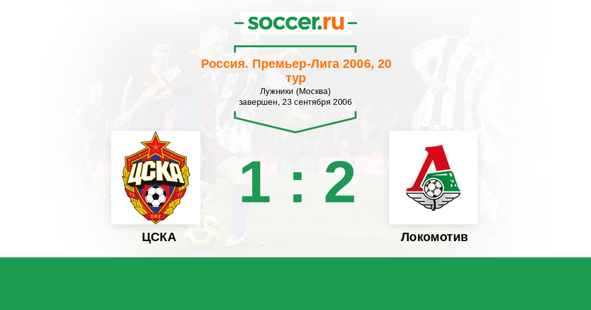 Россия. Премьер-Лига 16.04.2006 Локомотив Логотип футбольный клуб Локомотив (Москва) 3:2 Логотип футбольный клуб ЦСКА (Москва) ЦСКА