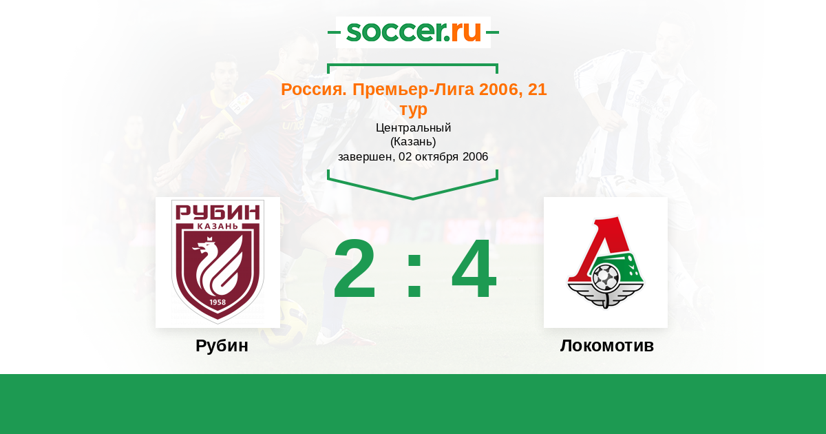 Россия. Премьер-Лига 23.04.2006 Локомотив Логотип футбольный клуб Локомотив (Москва) 4:4 Логотип футбольный клуб Рубин (Казань) Рубин