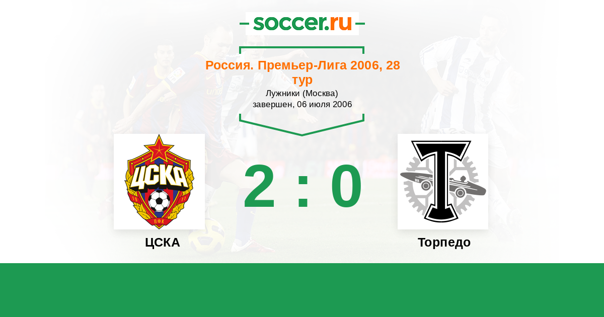 Россия. Премьер-Лига 29.07.2006 Торпедо Логотип футбольный клуб Торпедо (Москва) 2:2 Логотип футбольный клуб ЦСКА (Москва) ЦСКА