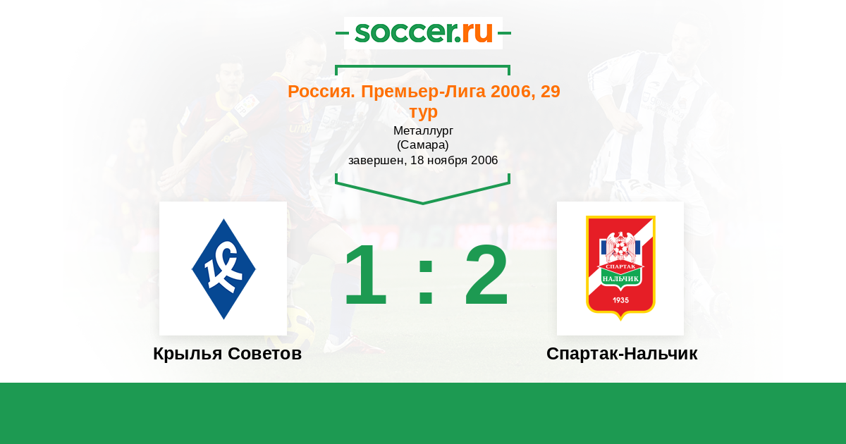 Россия. Премьер-Лига 06.08.2006 Спартак-Нальчик Логотип футбольный клуб Спартак-Нальчик 1:1 Логотип футбольный клуб Крылья Советов (Самара) Крылья Советов