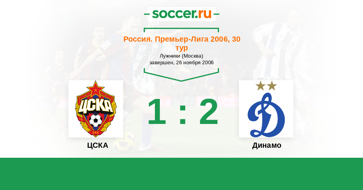 Россия. Премьер-Лига 13.08.2006 Динамо Логотип футбольный клуб Динамо (Москва) 2:3 Логотип футбольный клуб ЦСКА (Москва) ЦСКА