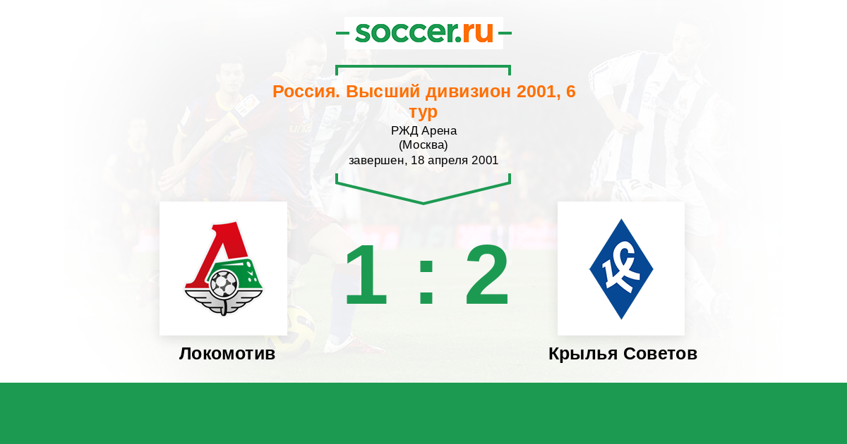 Россия. Премьер-Лига 01.08.2001 Крылья Советов Логотип футбольный клуб Крылья Советов (Самара) 1:1 Логотип футбольный клуб Локомотив (Москва) Локомотив