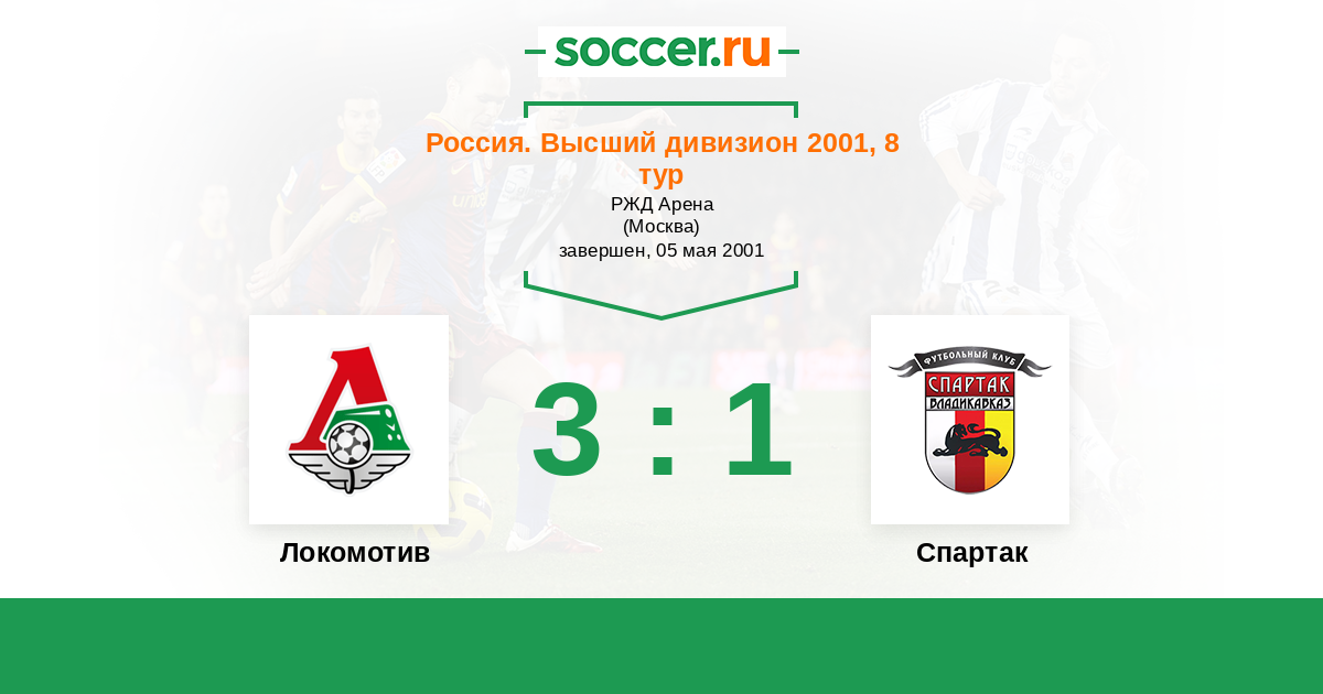 Россия. Премьер-Лига 18.08.2001 Спартак Логотип футбольный клуб Спартак (Владикавказ) 1:1 Логотип футбольный клуб Локомотив (Москва) Локомотив