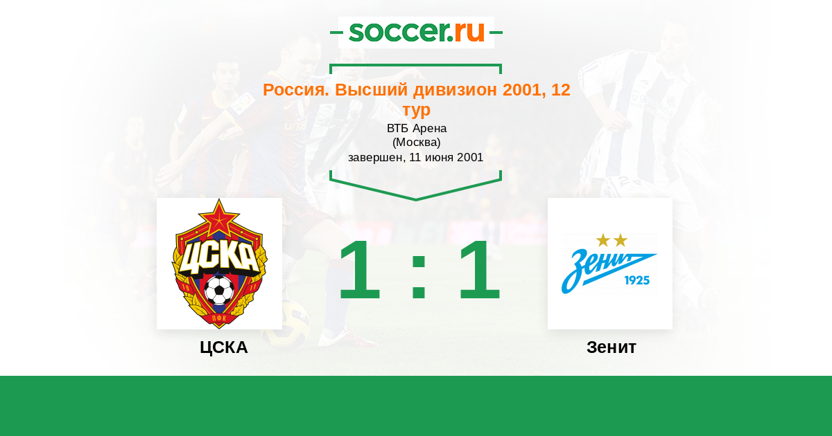 Россия. Премьер-Лига 30.09.2001 Зенит Логотип футбольный клуб Зенит (Санкт-Петербург) 6:1 Логотип футбольный клуб ЦСКА (Москва) ЦСКА